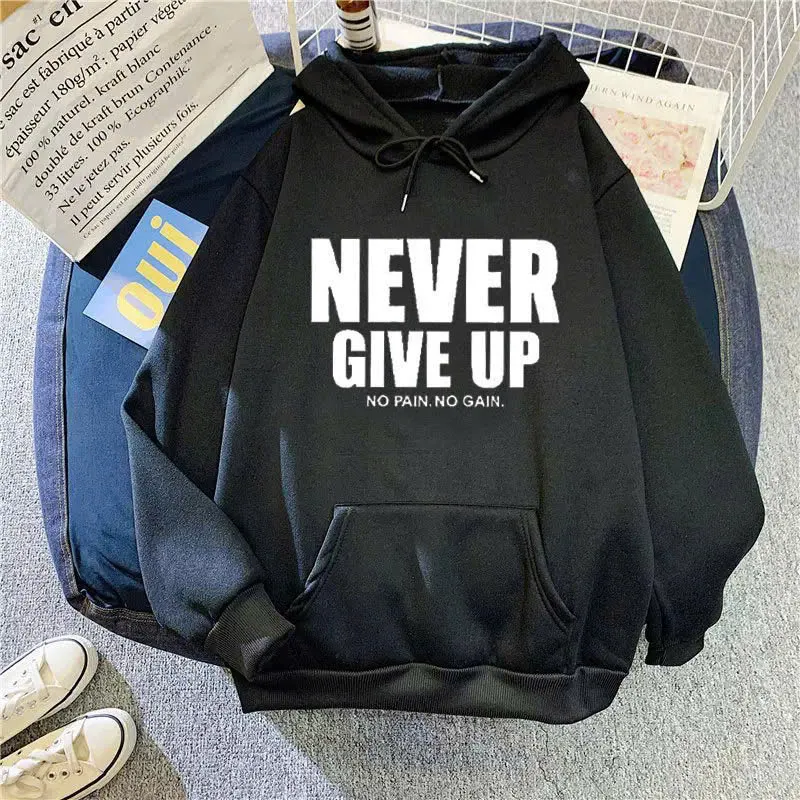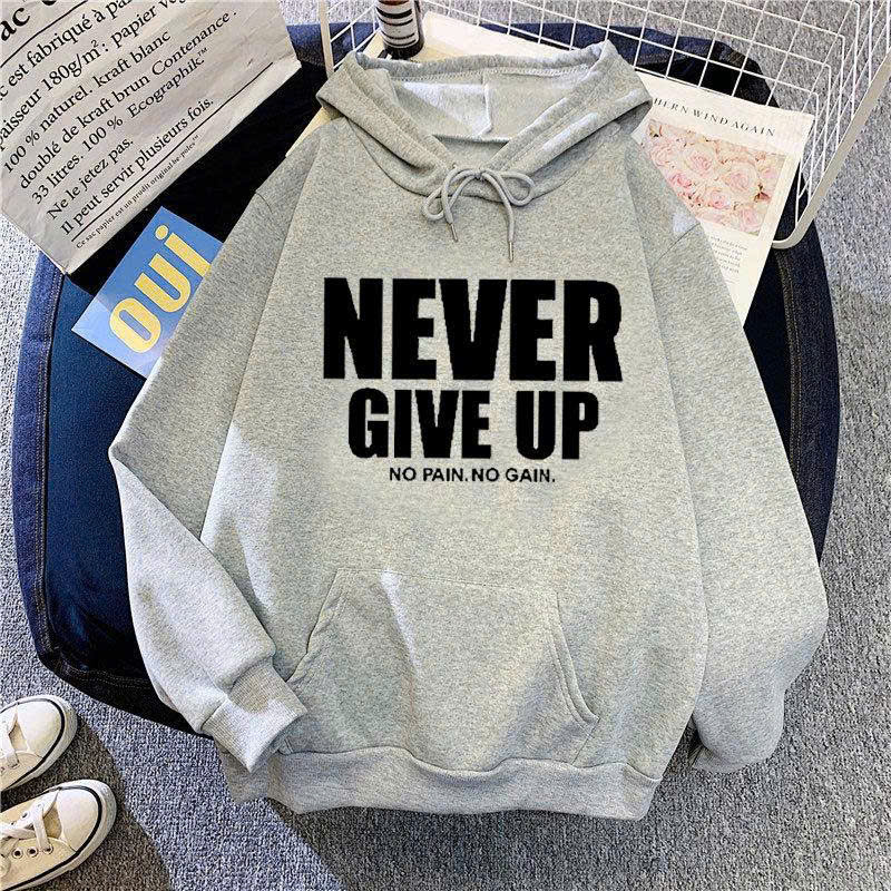Áo hoodie nỉ nam nữ unisex NEVER GIVE UP là mẫu áo khoác hoodie thu đông được thiết kế dành cho những ai yêu thích phong cách trẻ trung, năng động và dễ ứng dụng hằng ngày. Form áo rộng rãi, chất nỉ dày giữ ấm tốt, phù hợp mặc đi học, đi chơi, dạo phố hoặc mặc ở nhà.