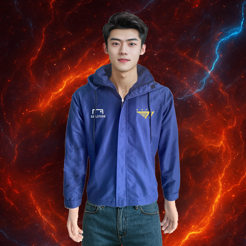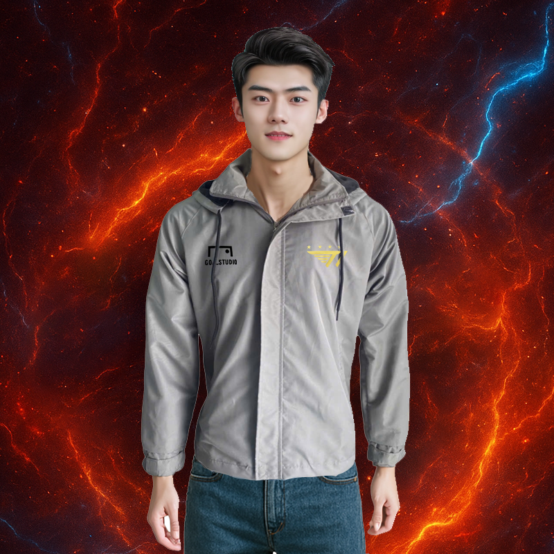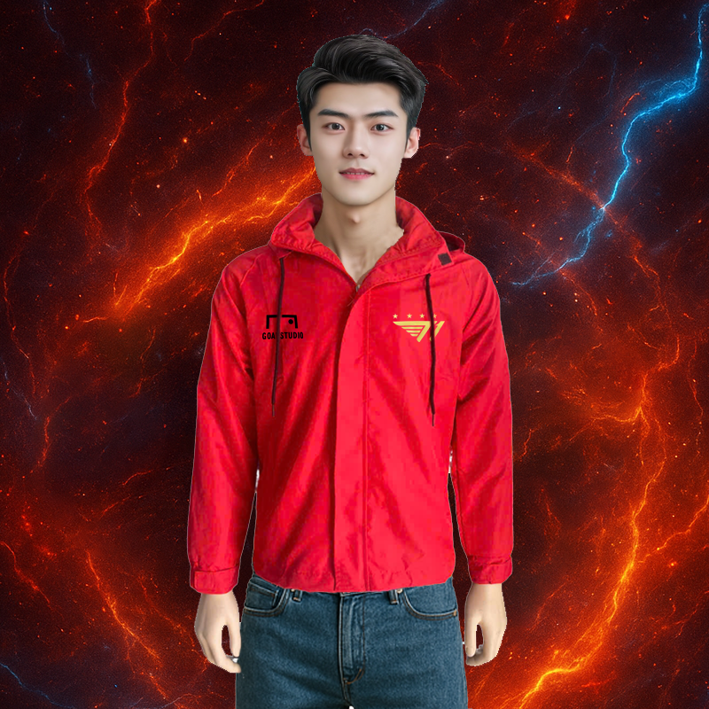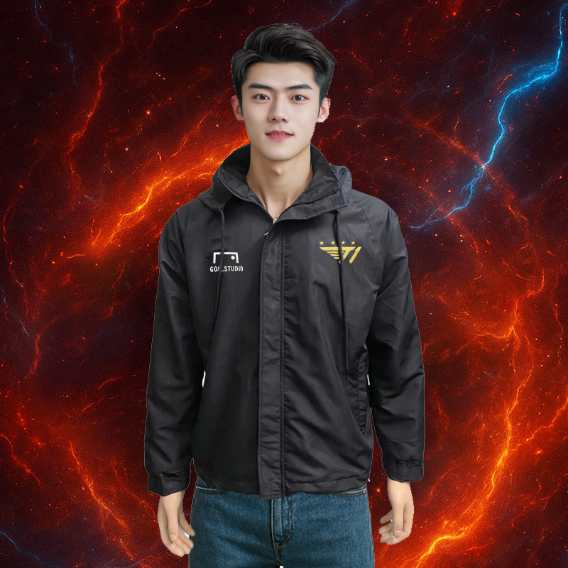 Áo khoác gió unisex nam nữ, vải caro chéo, nón tháo rời, in Liên Quân T1