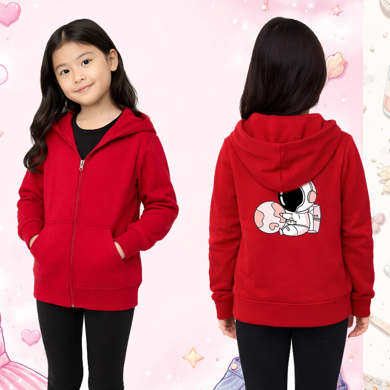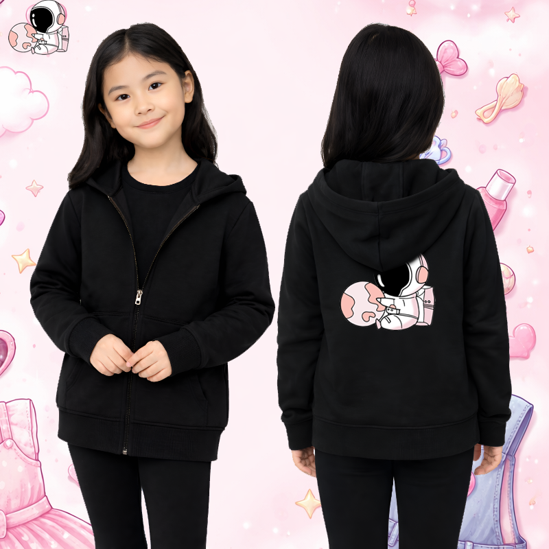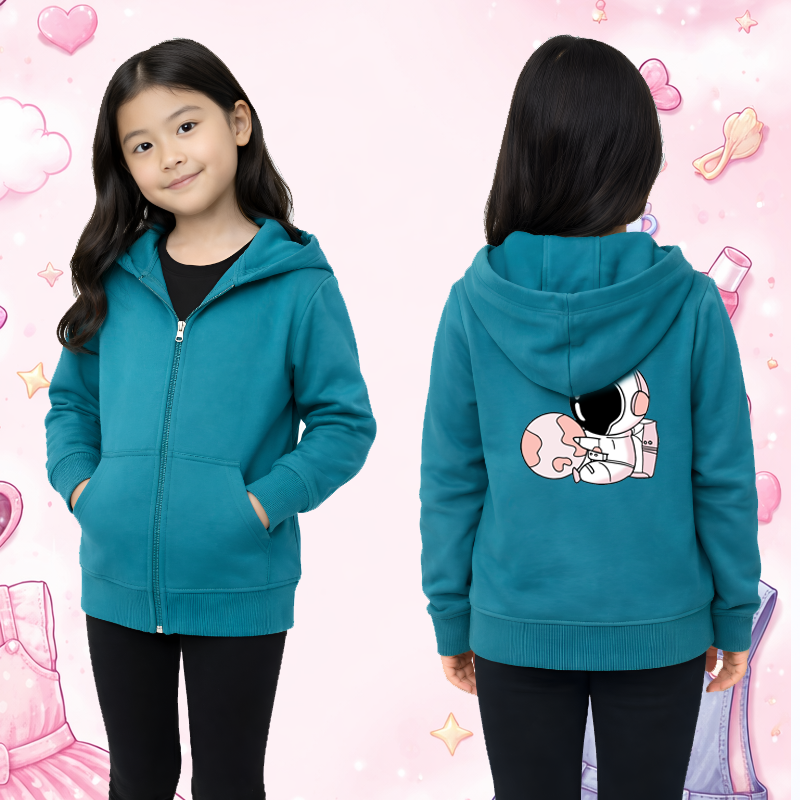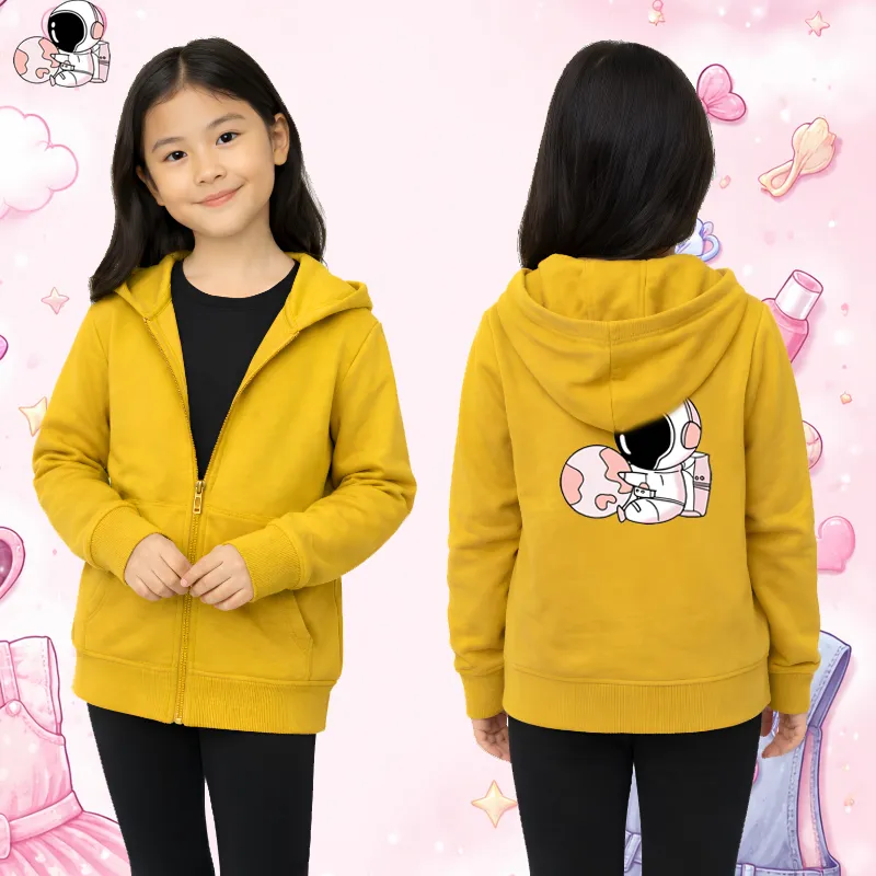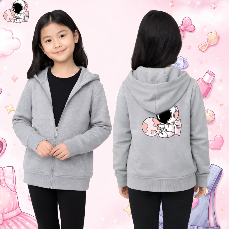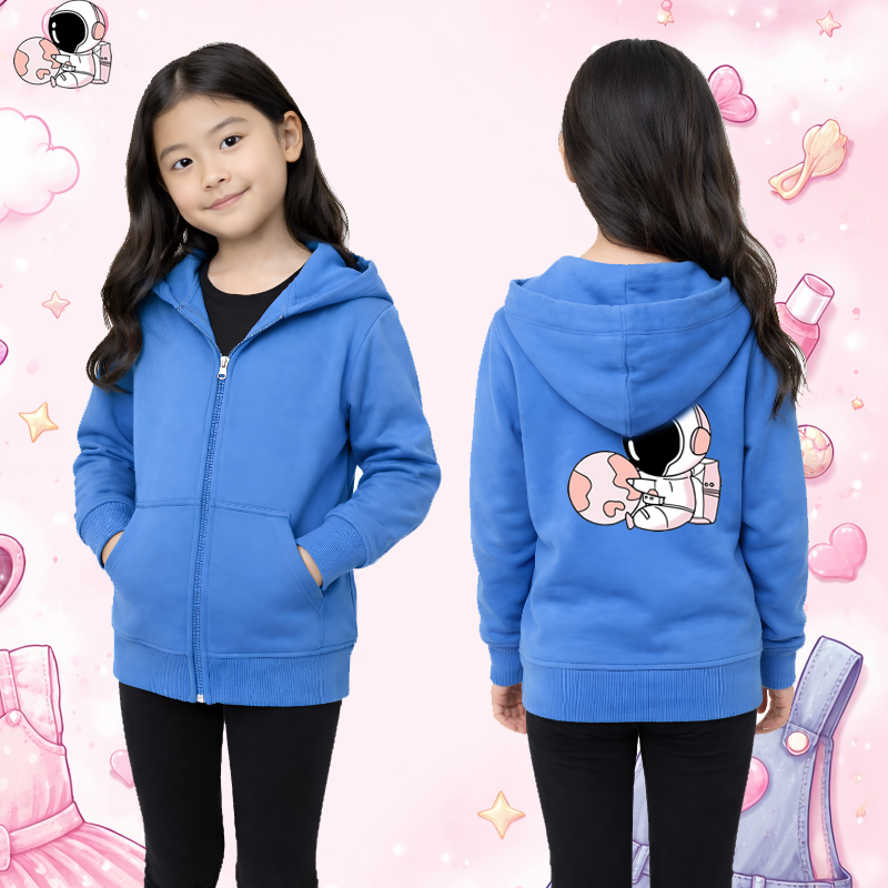 Áo Khoác Nỉ Hoodie Zip Cho Bé Gái In Hình Phi Hành Gia Dễ Thương, Có Mũ, Khóa Kéo Tiện Lợi, Chất Mềm Mịn Không Xù Lông, Giữ Ấm Tốt, Phù Hợp Mặc Thu Đông [BG Mi]