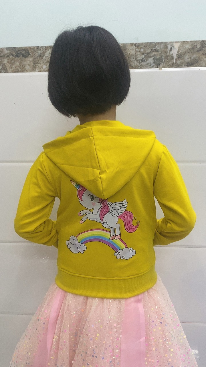 Áo Khoác Trẻ Em Bé Gái Thun Cotton Cao Cấp In Kỳ Lân 1 Sừng