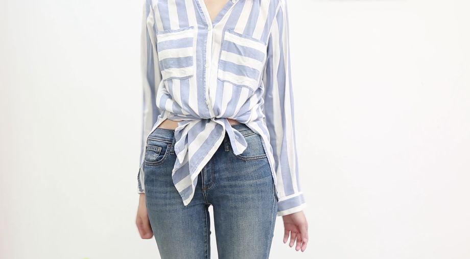 Buộc hay thắt áo ngang hông là một phong cách thời trang sành điệu và phong cách nó xuất từ khá lâu và cho đến nay vẫn được rất nhiều bạn nữ lựa chọn khi xuống phố. Nếu bạn tinh ý sẽ biết rằng có rất nhiều cách buộc áo ngang hông khác nhau và mỗi cách sẽ mang một nét đẹp riêng biệt. Dưới đây là một cách thắt áo ngang hông.