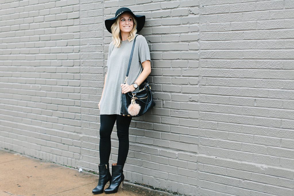 Hãy mix ngay chiếc áo thun oversize cùng với quần tâ hoặc legging thông thường bạn vẫn hay sử dụng. Để set đồ đỡ nhàm chán và tạo sự nổi bật, bạn có thể khoác thêm một chiếc jacket và kết hợp cùng ankle-boots.